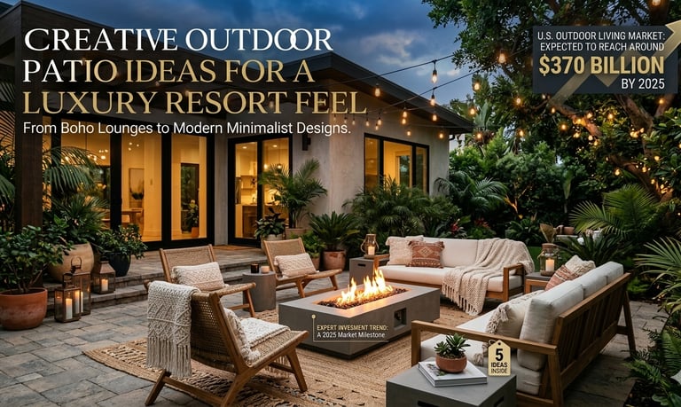 That’s where creative outdoor patio ideas come in. With the right design, even a small backyard can feel like a luxury resort. From cozy boho lounges to modern minimalist patios, today’s outdoor spaces are designed to feel like extensions of the home. Experts say homeowners are investing more in outdoor living than ever before, with the U.S. outdoor living market expected to reach around $370 billion by 2025.